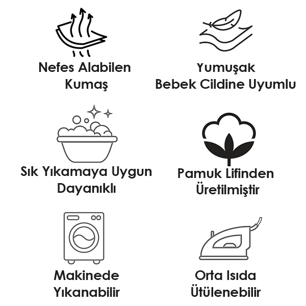 %100 Pamuk İçerikli: Doğal yapısıyla bebek cildine tamamen uygundur.